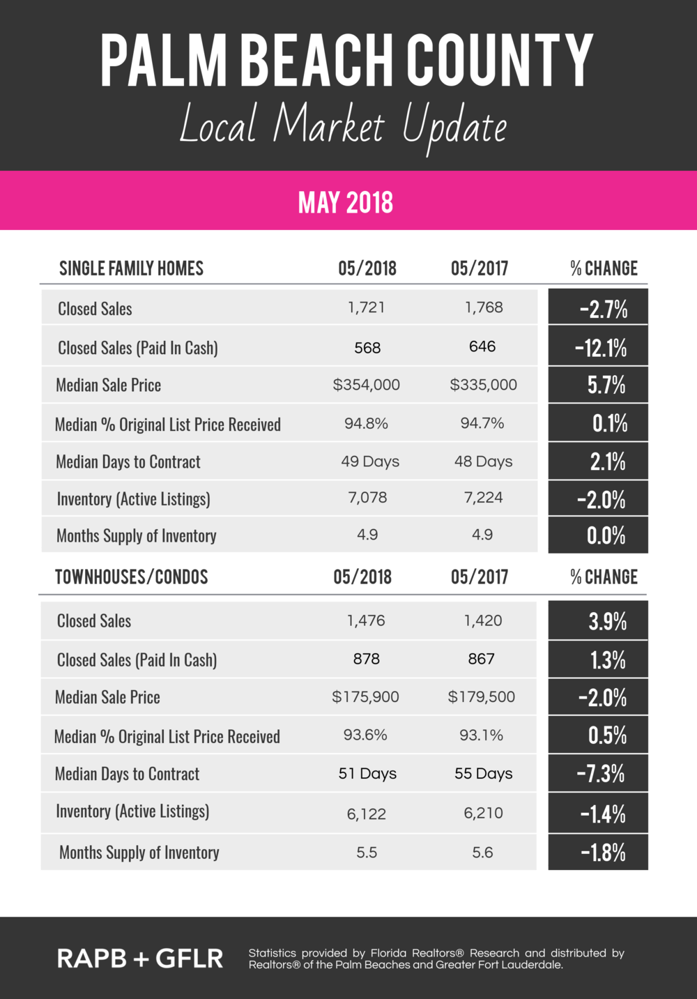 “Single family housing numbers are continuing to point to a seller’s market,” said Jeffrey Levine, President-Elect of the Realtors® Association of the Palm Beaches. “Now is a great time for prospective sellers to sell, and buyers have to prioritize what they are seeking as it is becoming more difficult to find the ‘perfect’ home.”